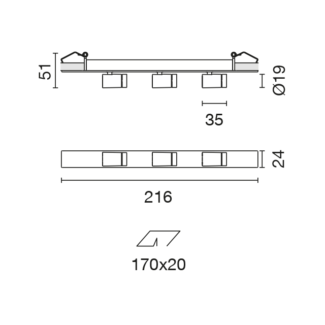 Palco Einbauleuchten / Aufbauleuchten - Palco lineare Einbauleuchte 3 x Ø19 - Medium - Remote-Vorschaltgerät - 6W 361.8lm - 2700K - CRI 90