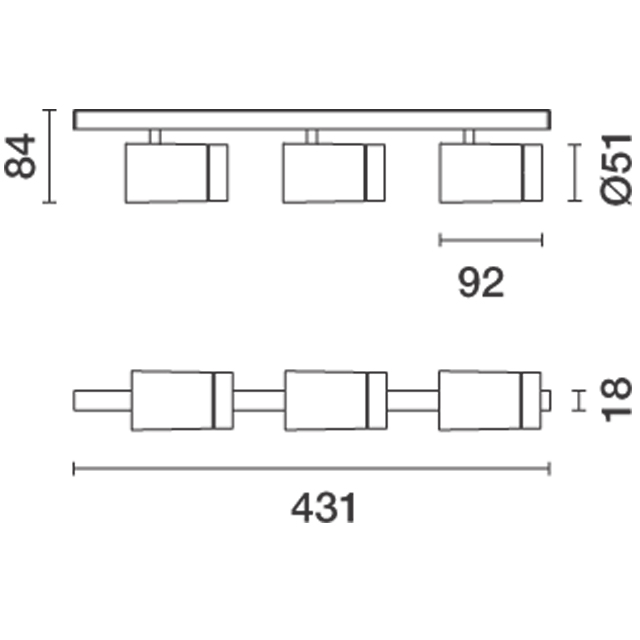 Palco Encastré / en saillie - Palco linéaire 3 x Ø51 de surface - flood - driver distant - 45W 2761.2lm - 4000K - CRI 90