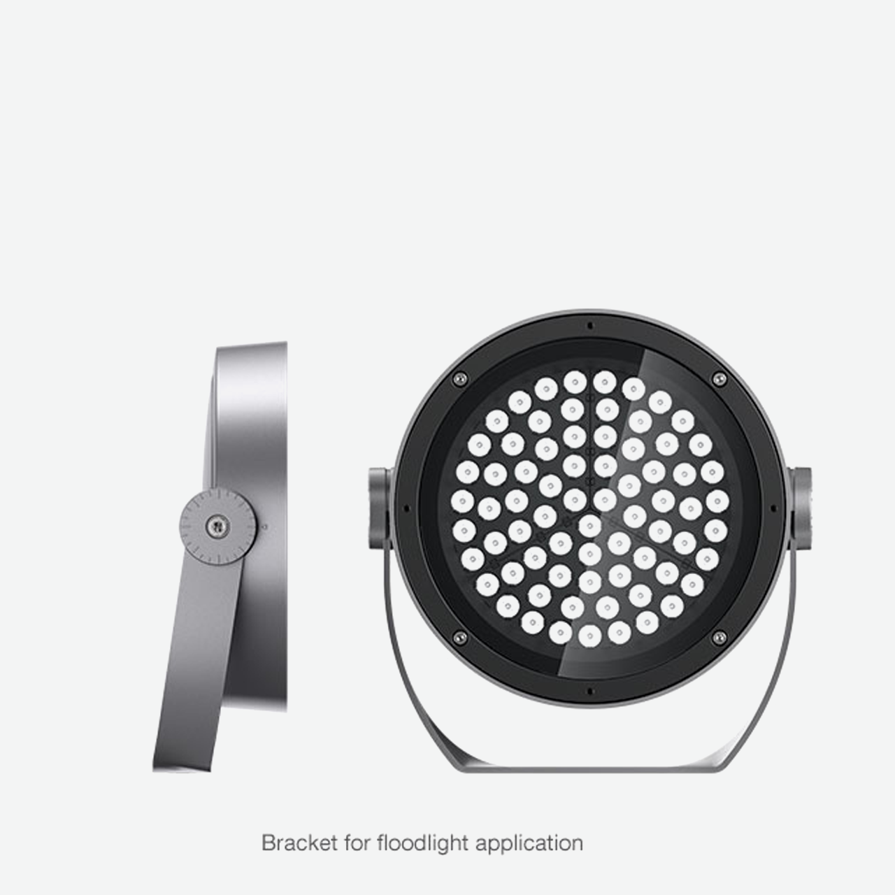 - Costituito da vano ottico in pressofusione di alluminio e vetro di sicurezza sodico-calcico temprato trasparente. Staffa per applicazione a proiettore e staffa per applicazione a maniglione da ordinare separatamente.