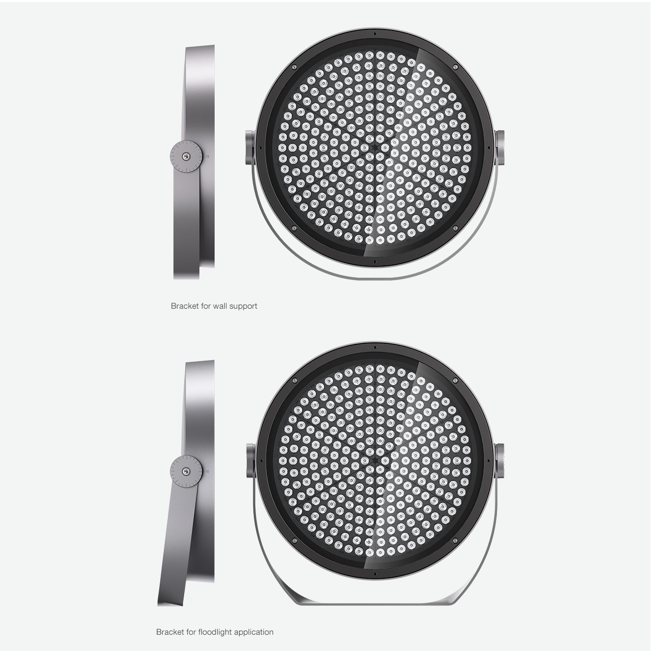 - Costituito da vano ottico in pressofusione di alluminio e vetro di sicurezza sodico-calcico temprato trasparente. Staffa per applicazione a proiettore e staffa per applicazione a maniglione da ordinare separatamente.