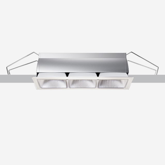 - Il raster integra i diaframmi a lenti multiple per le sorgenti LED. La risultante genera un’emissione luminosa molto performante combinata ad un alto rendimento energetico.