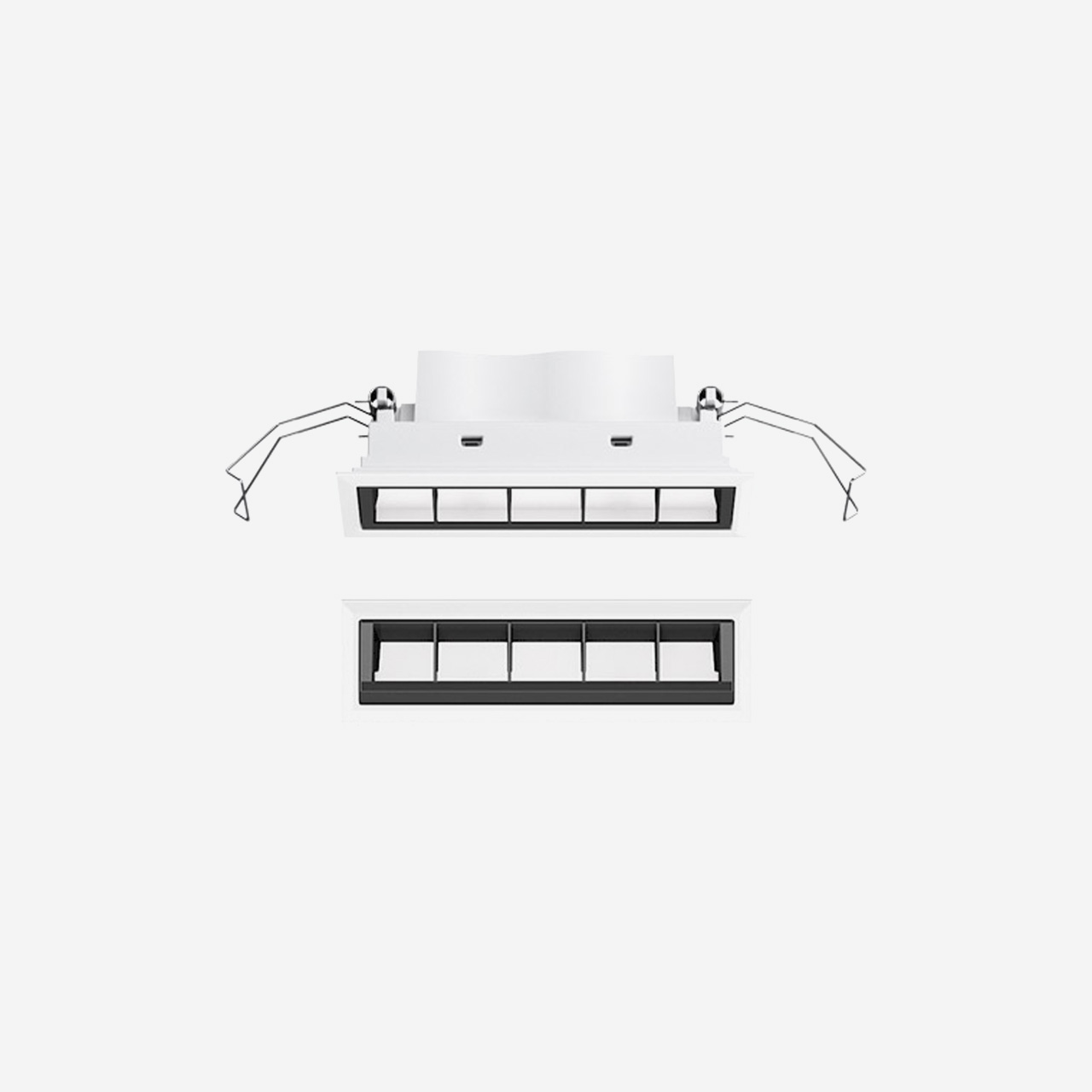 - Installazione ad incasso su controsoffitti di spessore spessore 12.5 - 15 - 20 mm per versioni Minimal (senza falda perimetrale) o da 1 a 25 mm per versioni Frame (con falda) tramite molle di torsione.