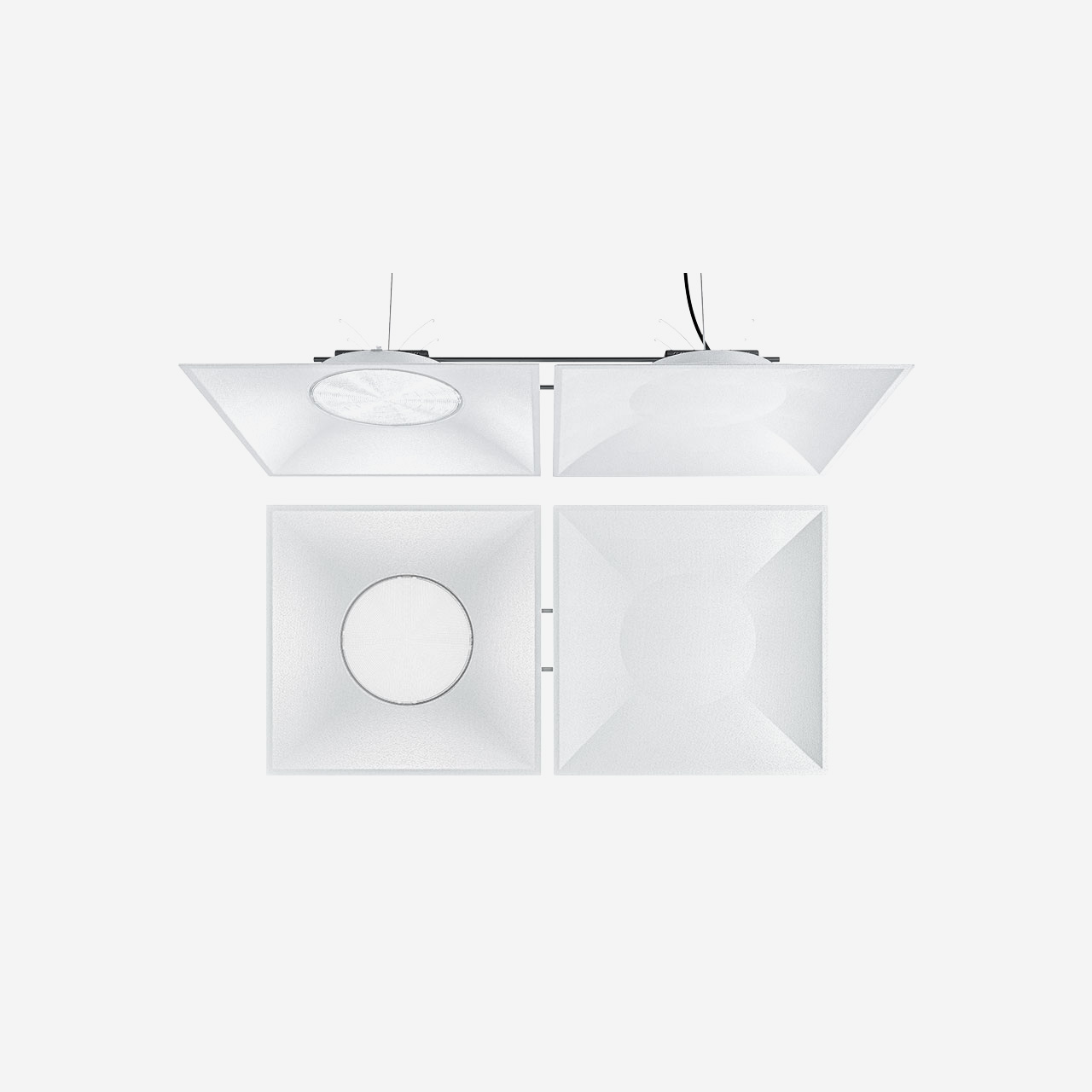 - Apparecchio 596x596 mm per installazione a sospensione.