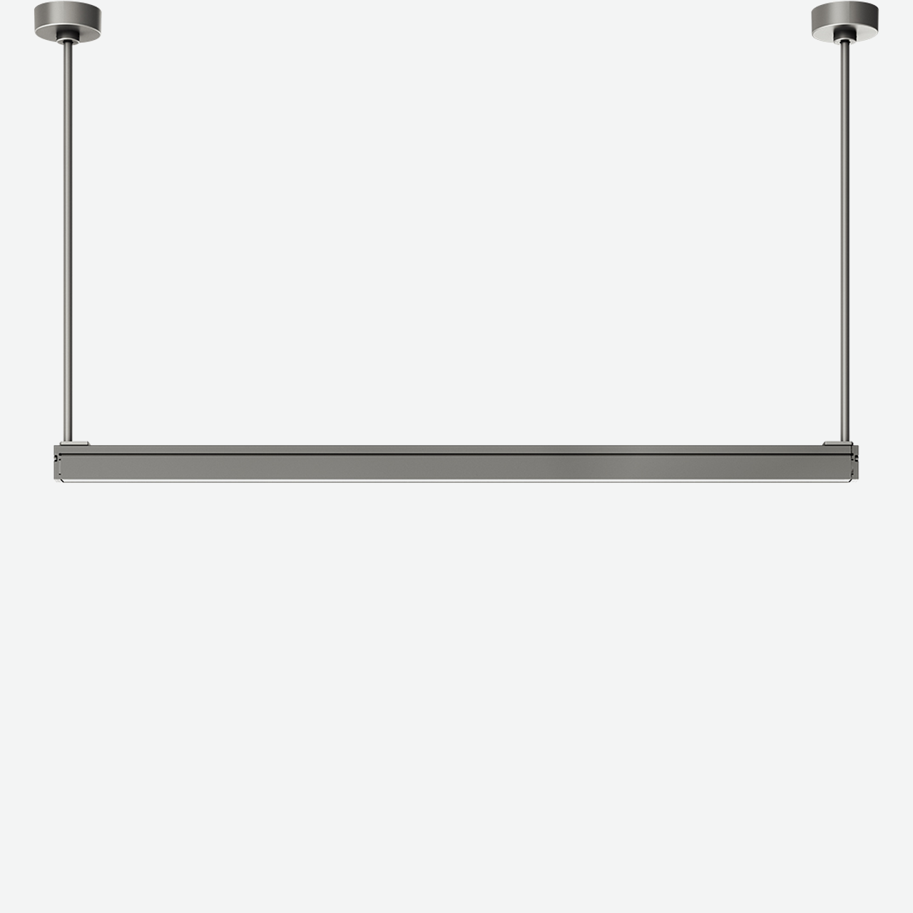 - Kit di sospensione end to end tramite cavo formato da: aggancio per installazione a soffitto, cavo di sospensione, regolatore e aggancio per due prodotti.