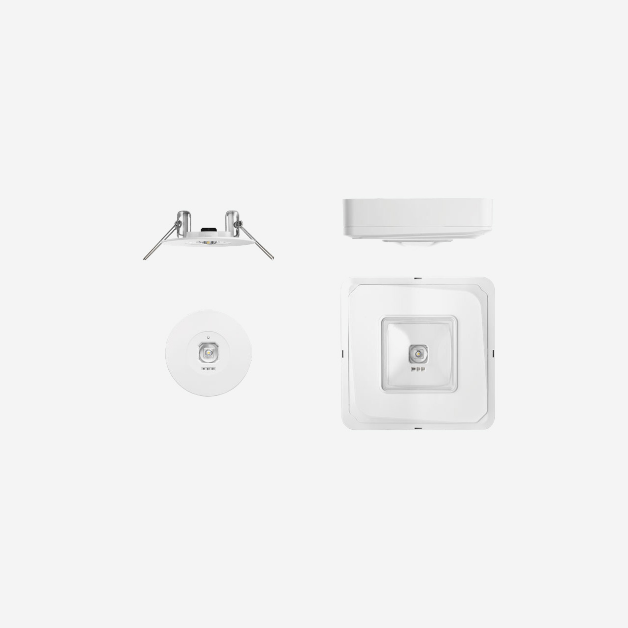 - Apparecchio di emergenza autonomo in versione da incasso e plafone.