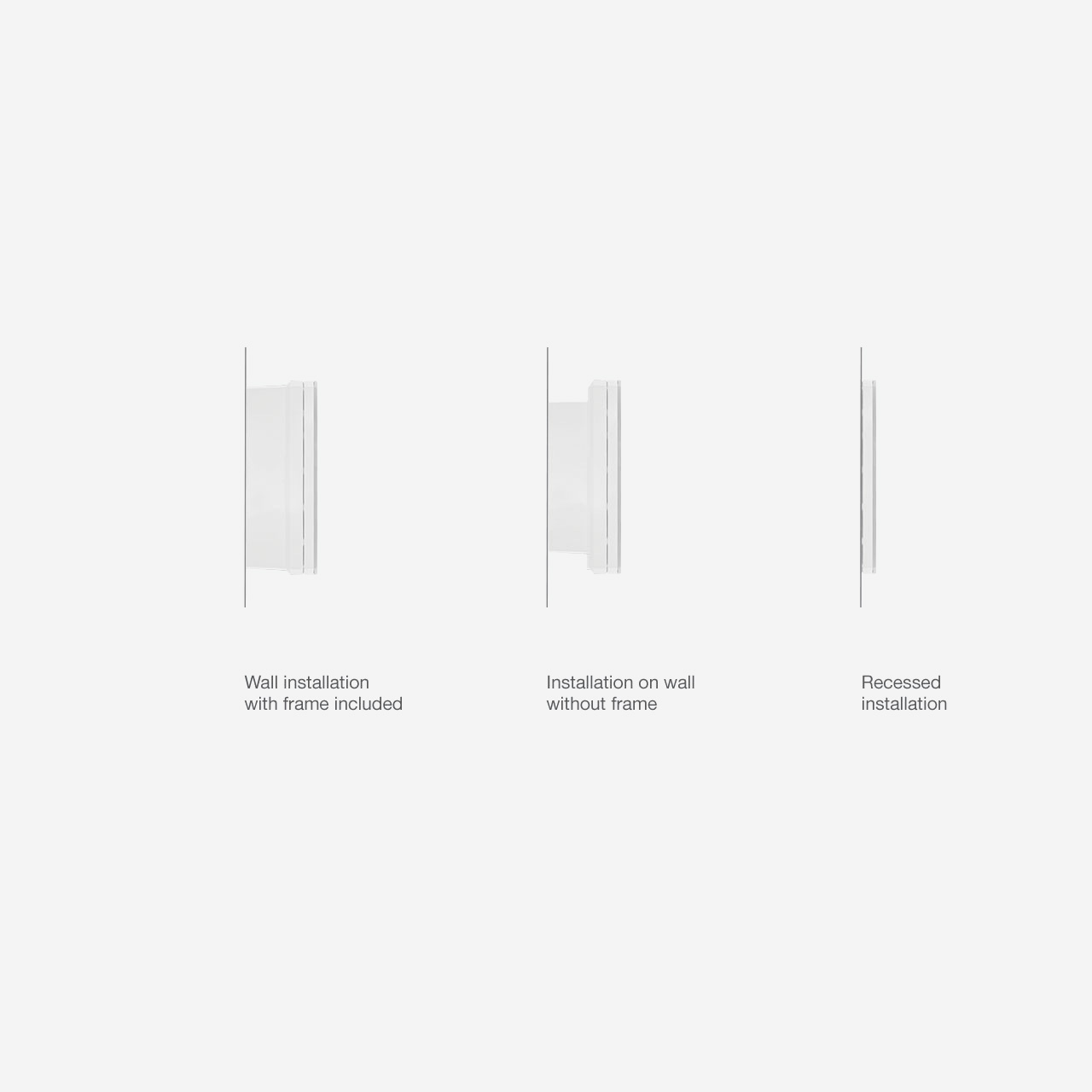 - Installazione direttamente a plafone oppure con cornice laterale (in dotazione) garantendo un’estetica uniforme per il corpo.