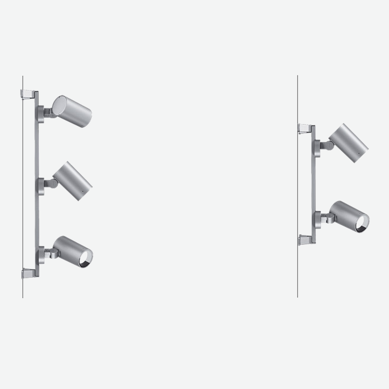 - Installazione a parete tramite supporto multiplo per 2, 3. Costituito da vano ottico (Palco InOut ø83, ø119, ø137 e ø153).