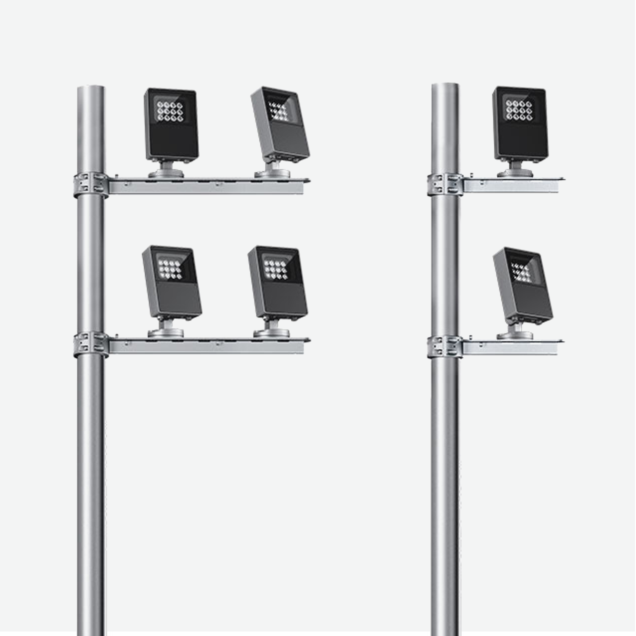 - Installazione su palo tramite bracci singolo/doppio per pali diametro ø 102; ø 120mm.