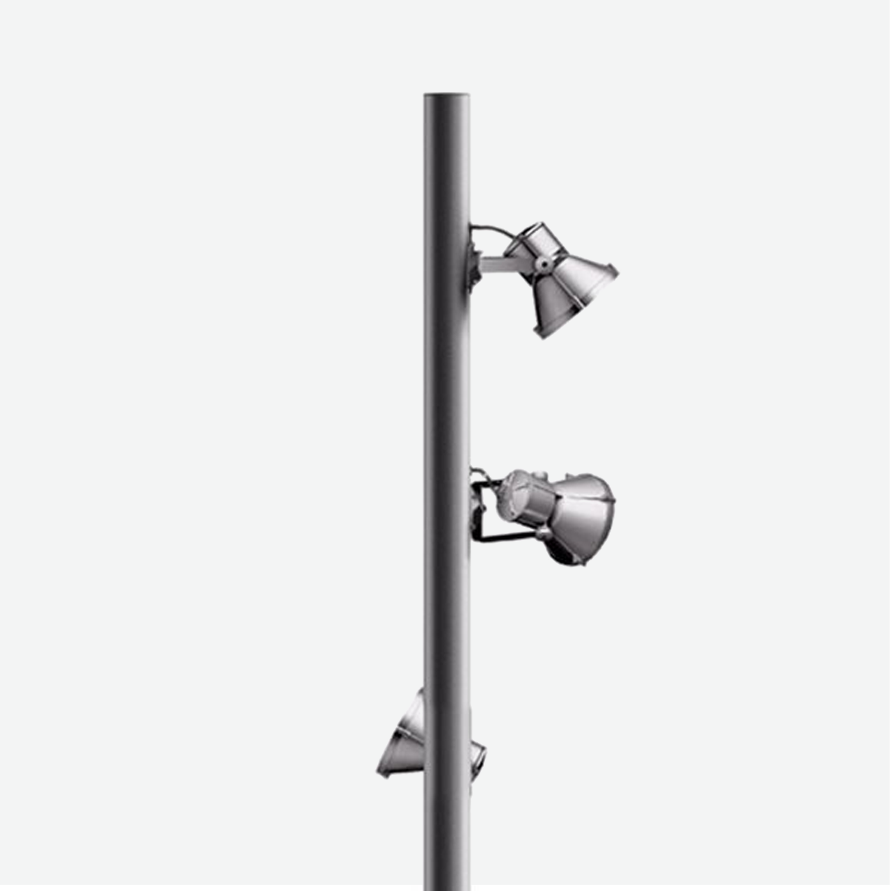 - Installazione su pali pre-forati tramite flangia dal design minimale e bracci singolo o doppio per pali cilindrico-conici Ø102 - Ø120mm.