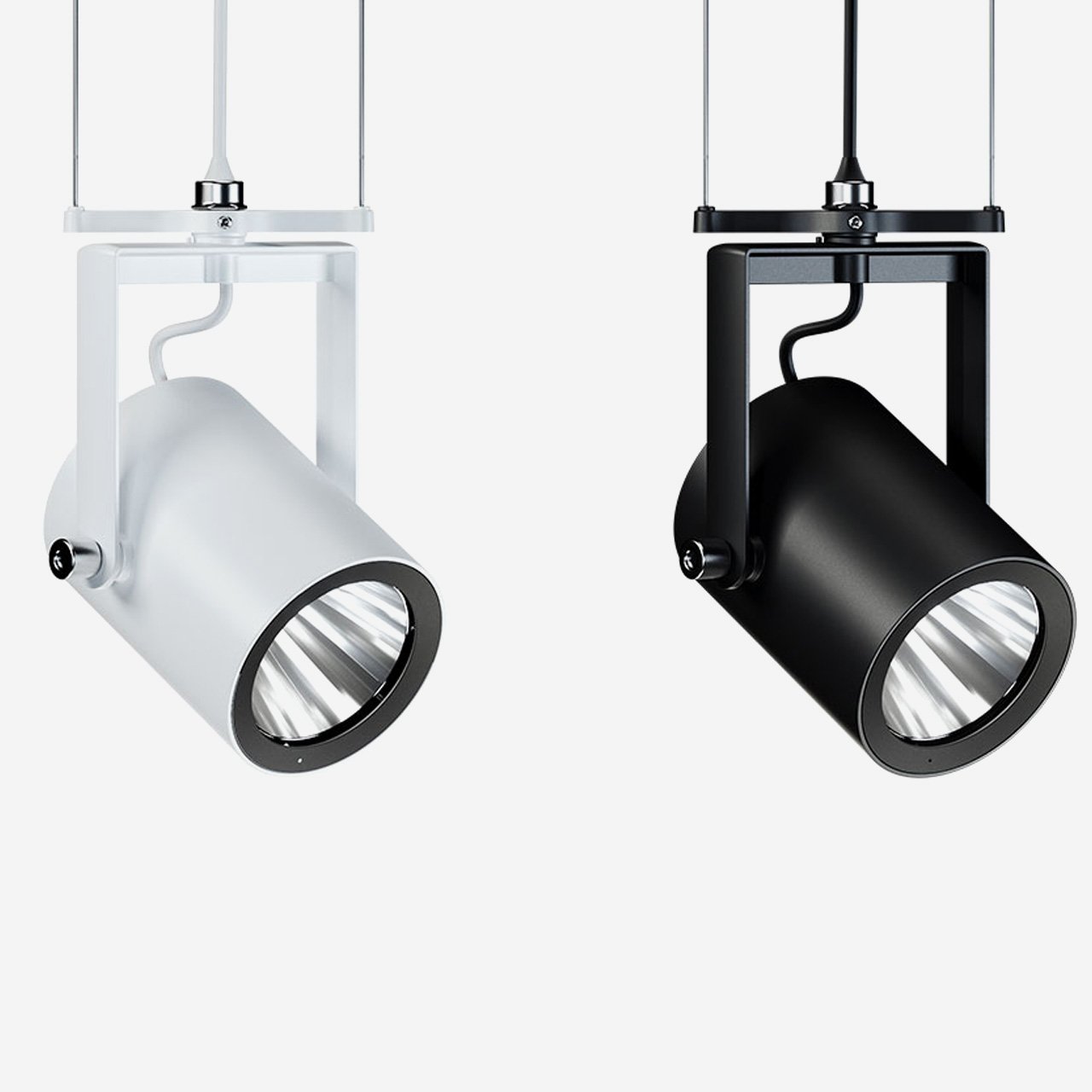 - Apparecchio a sospensione dotato di adattatore per installazione su binario elettrificato.