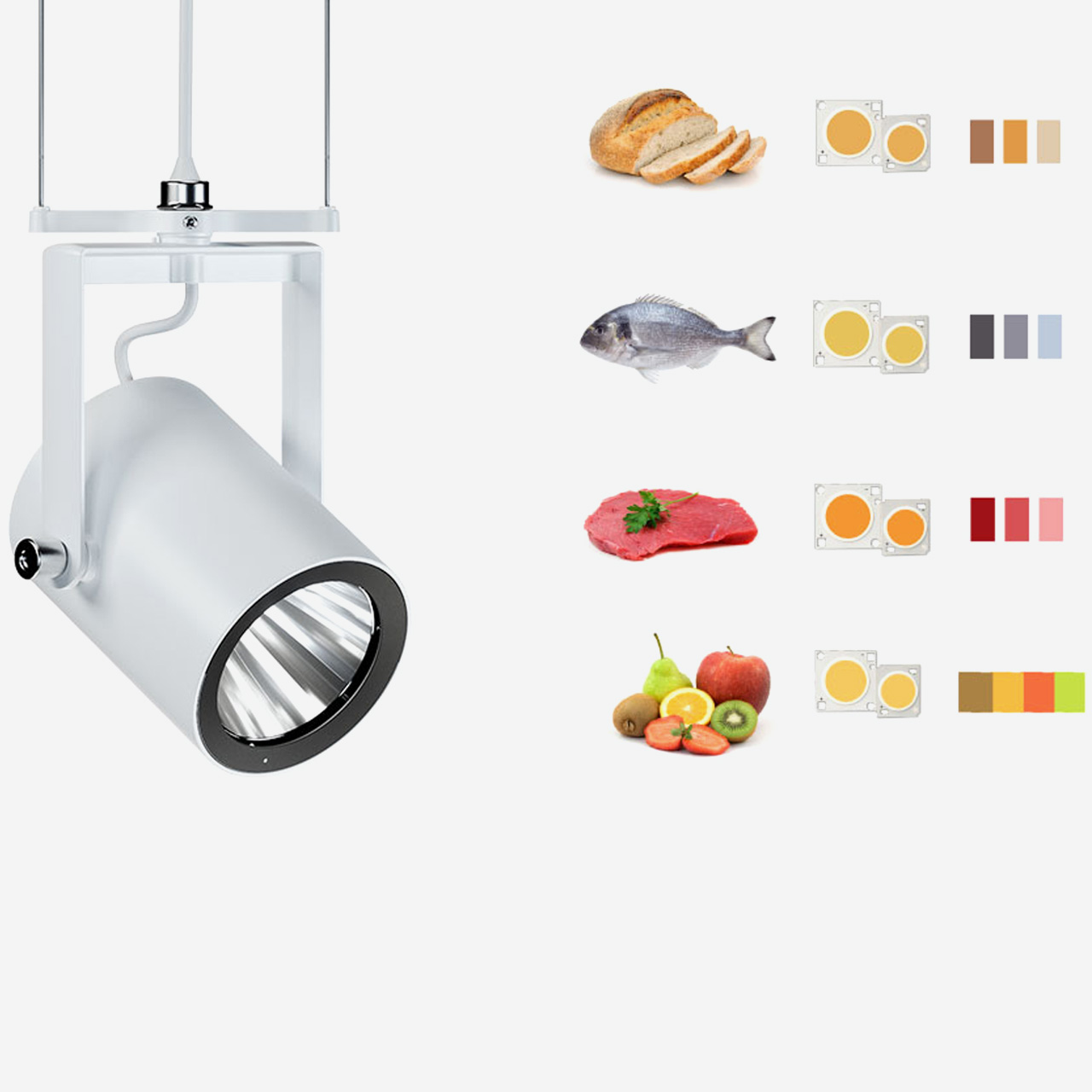 - Apparecchio a sospensione dotato di adattatore per installazione su binario elettrificato.
