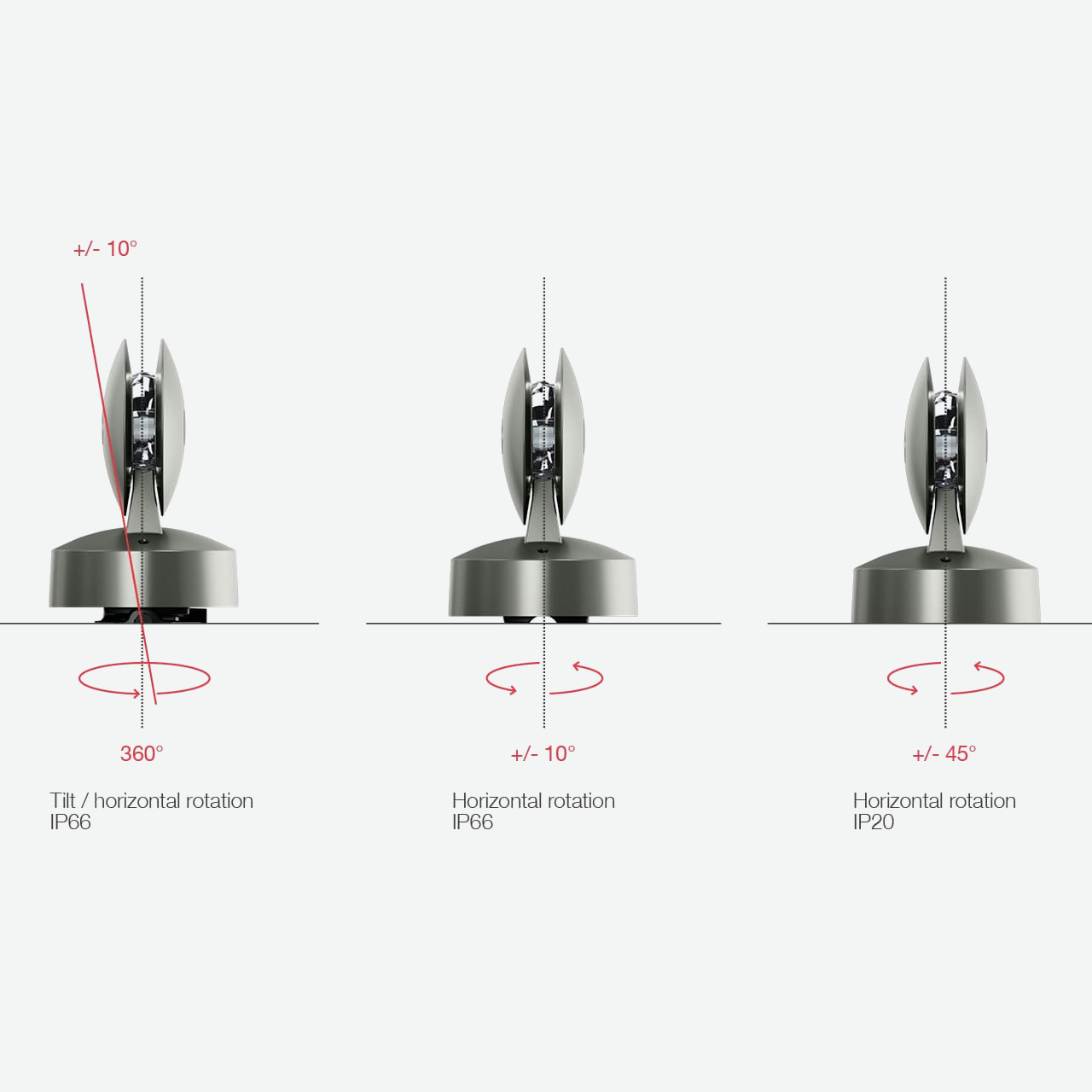 - X962: piastra per installazione in ambienti interni (IP20) con regolazione sul piano trasversale (da -45° a +45°).