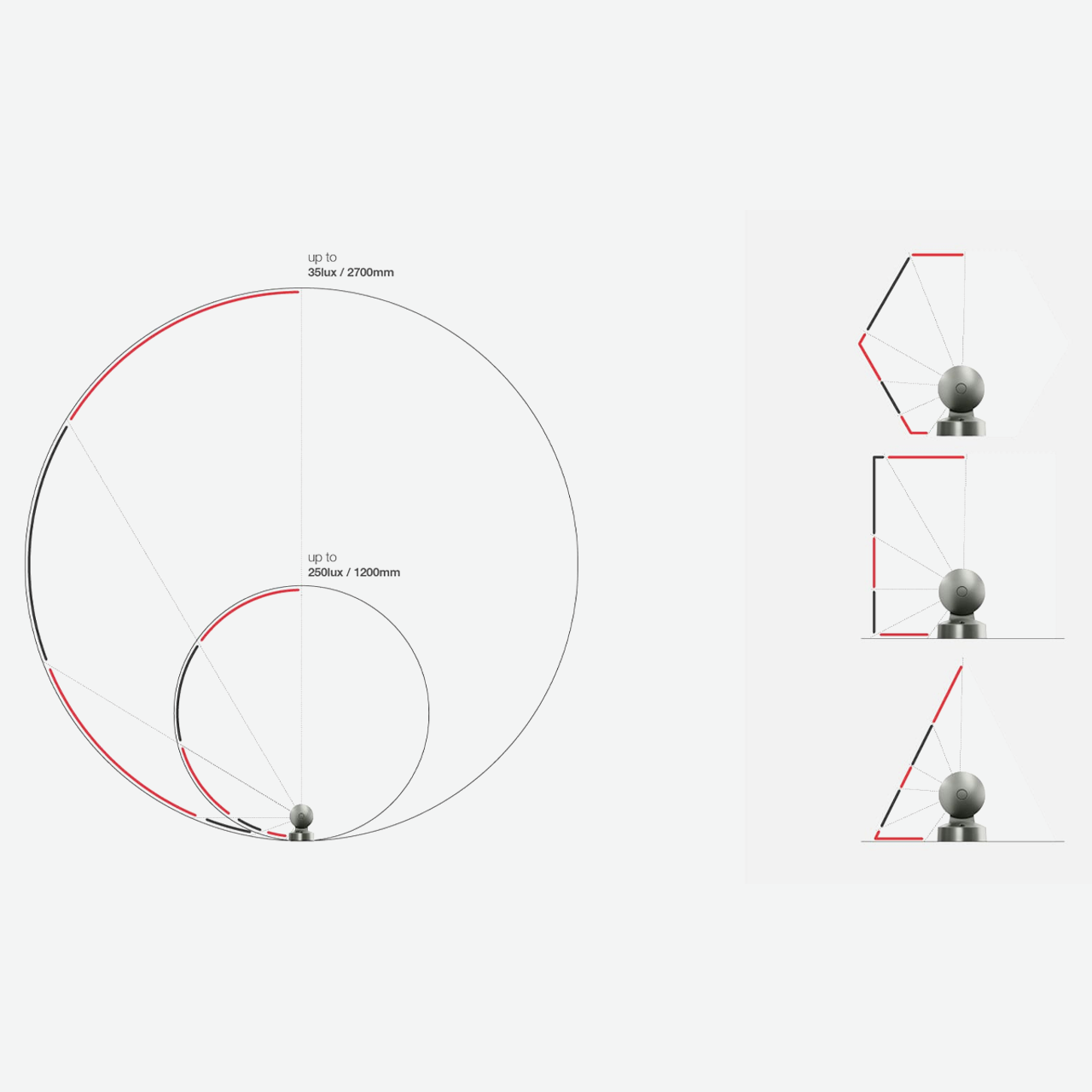 - Dotato di ottica Lama 360° divisa in dieci settori controllabili e gestibili separatamente.