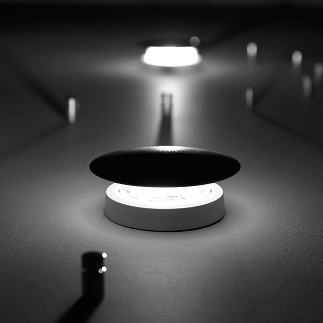 - Versioni ad applique costituite da schermo e basetta di supporto. Schermo in polimetilmetacrilato, basetta di supporto in pressofusione di alluminio, piastra per aggancio a muro in acciaio inox, fornito con cavo L=400 mm (escluso le versioni con alimentatore).