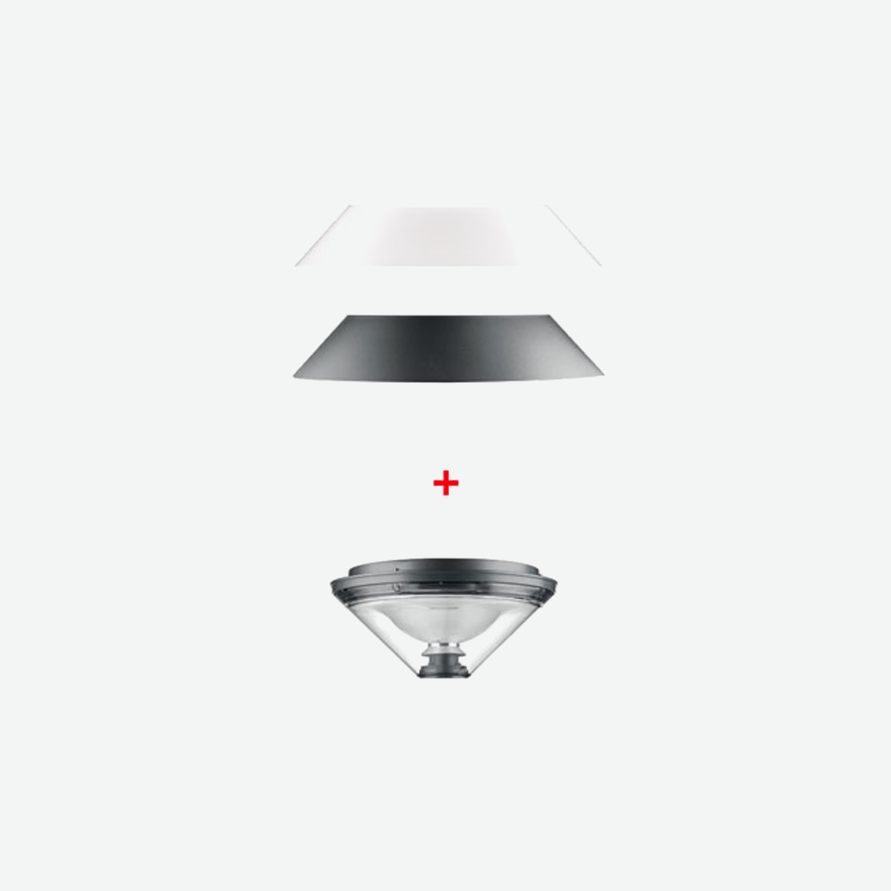 - Versioni con ottiche stradali con sistema Optismart Lenses, versioni con ottica simmetrica/ellittica composte da rifl ettore superiore in alluminio superpuro anodizzato, lente in metacrilato e rifl ettore inferiore in PMMA metalizzato.