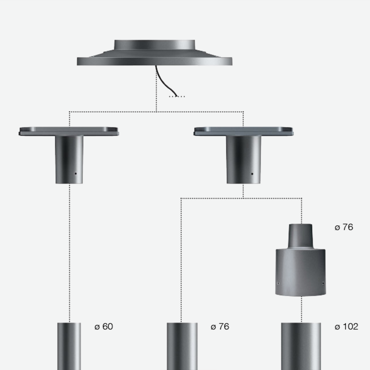 - Installazione su pali con terminale da Ø42mm a 102mm (con l’utilizzo di adattatori e riduttore).
